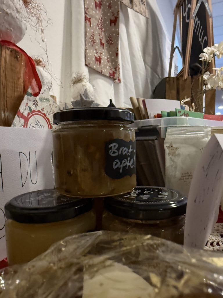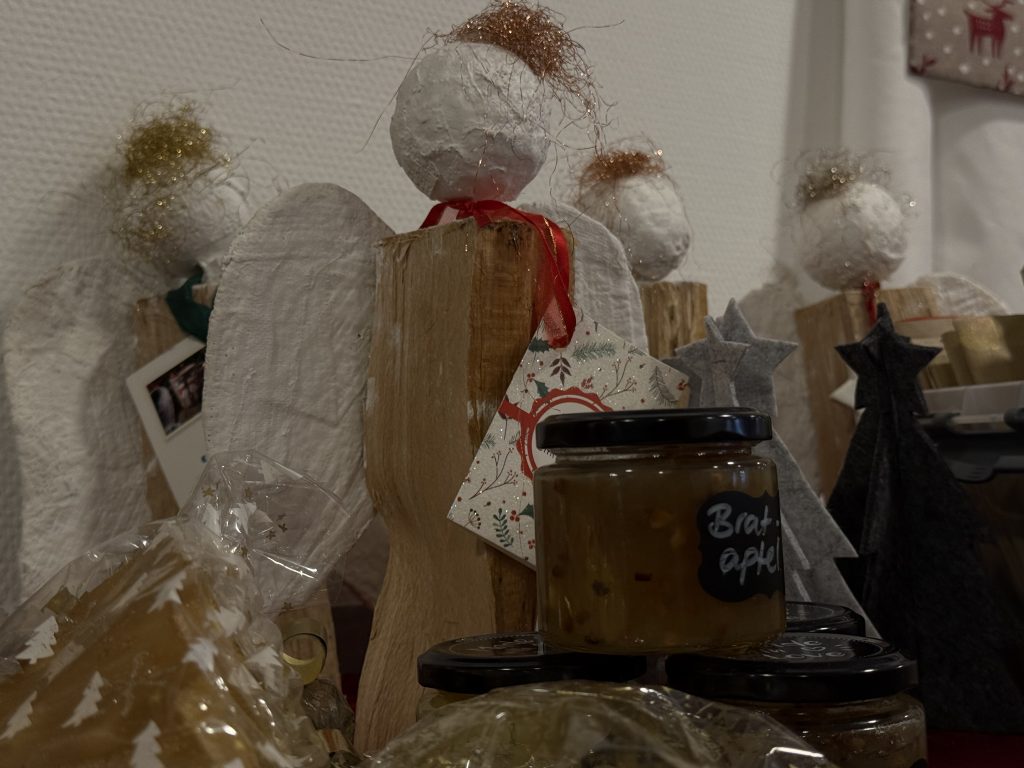 Ein Schmuckstand mit großer Auswahl lud alle dazu ein, sich ganz nach Wunsch etwas auszusuchen. Besonders schön war auch die Unterstützung der Kita, die mit selbstgemachter Marmelade, liebevoll gestalteten Lesezeichen und kleinen Geschenken unseren Bewohnerinnen und Bewohnern eine große Freude bereitete.