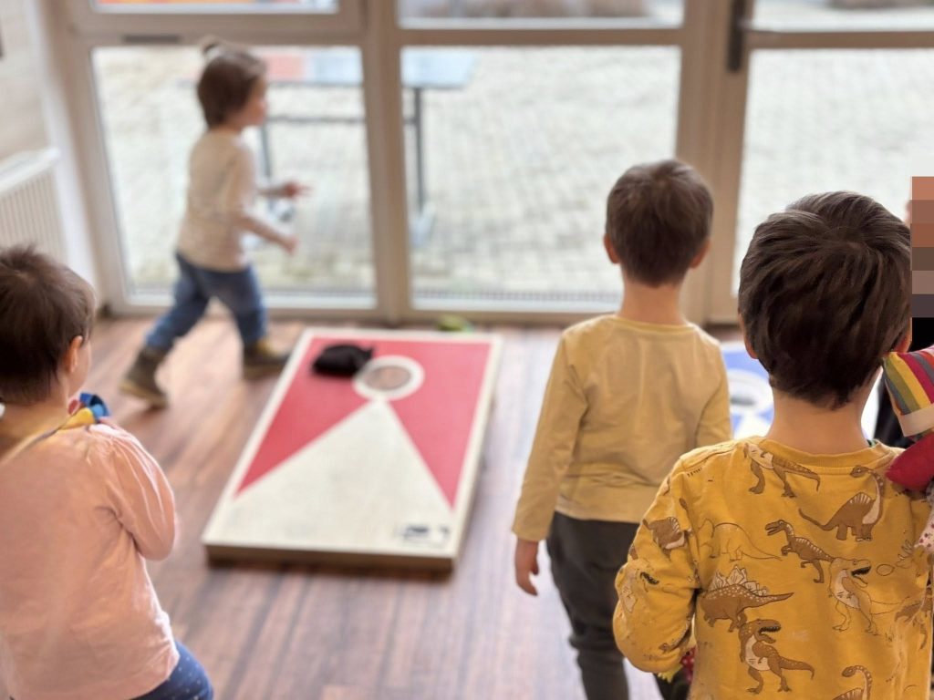Gemeinsam wurde gelacht, angefeuert und fleißig gespielt: Beim Cornhole war Treffsicherheit gefragt und beim Ringe-Werfen auf Stangen zeigten alle großen Einsatz.
